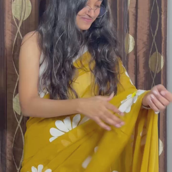 Hand painted mul cotton saree